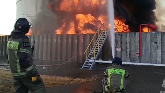 Прес-служба руског Министарства за ванредне ситуације саопштила је јутрос да ватрогасци гасе пожар у резервоару са нафтним дериватима у Азовском округу Ростовске области.