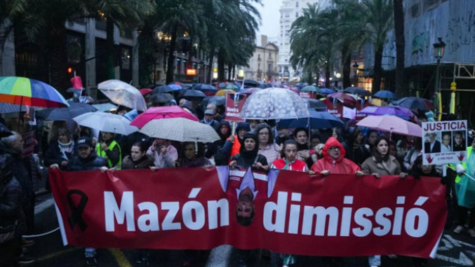 Више хиљада људи изашло је на улице Валенсије тражећи оставку регионалног лидера Карлоса Мазона и његове владе због одговора на смртоносне поплаве прошлог октобра.